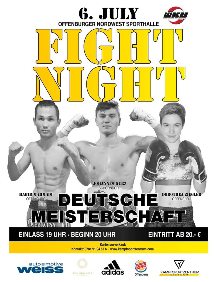Fightnight Offenburg – am 06.07.2019 heißt es Fighnight in Offenbach mit ca. 11 Kickbox-Kämpfen mit Kämpfern aus Freiburg, Stuttgart, Offenburg, Pforzheim. Die Highlights des Abends wird ein deutscher Titelkampf sowie zwei Internationale Superfight sein.