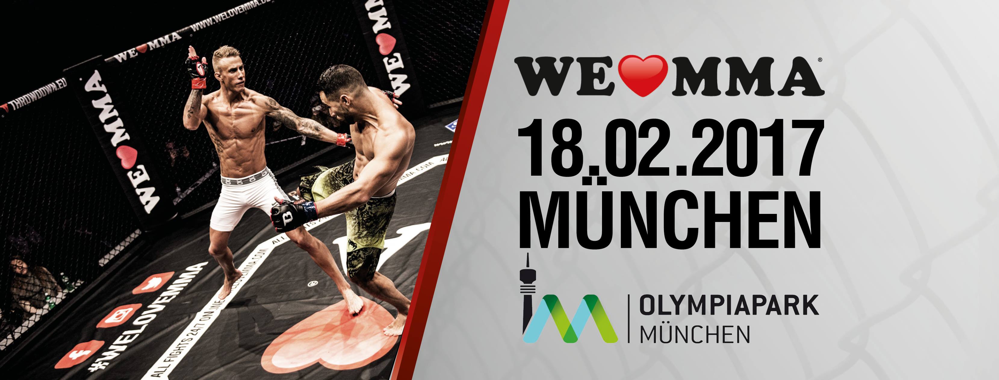 We love MMA 29, das ultimative Kampfsportspektakel und die bekannteste nationale Mixed Martial Arts-Serie, kommt am 18.02.2017 in die bayrische Landeshauptstadt. 12 spektakuläre Mixed Martial Arts Kämpfe im We love MMA-Oktagon stehen in der Kleine Olympiahalle München auf dem Programm.